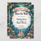 Encantem seus hóspedes com este casamento de conto de fadas da floresta guardado na data, apresentando um castelo branco, animais florestais e florais vibrantes. Com uma charmosa faixa "Era uma Vez na Hora" e detalhes mágicos, é perfeito para uma celebração romântica de um livro de histórias. ... Volta do Convite: O verso fornece as iniciais dos nomes da noiva e do noivo, colocadas contra uma mágica fronteira florestal de florais brilhantes, luzes cintilantes e ferramentas adoráveis, assegurando que seus convidados estejam preparados para se juntar a vocês para seu futuro feliz.