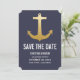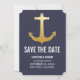 Moderno Faux Dourado Folha Âncora Náutica Salvar A Data Azul Marinho