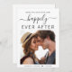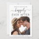 Moderno salve o anúncio do casamento. A frente apresenta sua foto, "Save The Date For Our Felily Ever After" , em uma mistura de simples tipografia e roteiro com supressões e seus primeiros nomes e data de casamento. No verso, personalize sua mensagem com mais detalhes e adicione seus nomes em um script semelhante a assinatura.