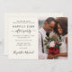 A recepção de casamento moderna de creme leve para salvar o anúncio da data com sua foto e "Felizmente, nunca depois da festa" em uma simples tipografia e um roteiro de na moda com pestanas. Personalize os detalhes da data em tipografia simples e adicione seus nomes em um script semelhante a assinatura.