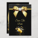 Linda e elegante qualquer festa de aniversário etária Salve a data para as mulheres, com imagens impressas de um arco de ouro glamouroso com uma joia de diamante de rocha no centro e uma fita de ouro sobre uma reluz preta cintilante, e fundo preto comum, com um monte de balões de ouro e preto cercados por estrelas. O verso tem um bonito tapete de pérolas dourado para encobrir seus detalhes de evento com dois copos de champanhe com arcos dourados no fundo todos impressos em um plano de fundo preto. Todo texto é totalmente personalizável para atender às suas necessidades. A cor do texto pode ser alterada. Se você quiser ajudar a personalizar seu produto ou quiser fazer a correspondência de produtos, entre em contato comigo na minha loja e eu ficarei muito feliz em ajudá-lo. Matriz Pérola: ©Hazel Kinvig-Paul www.design-a-dream.co.uk
