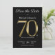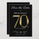 Festa de aniversário de 70 preto e Dourado clássico Salve a data. Aniversário simples, mas clássico, salve o cartão de data com o marco do ano de nascimento com efeito de texto em ouro sólido! Este é um modelo editável e poderia ser usado tanto para homens quanto para mulheres. Contacte-me se tiver alguma pergunta, farei o meu melhor para ajudar!