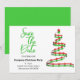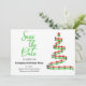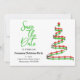 Você pode fazer o anúncio da festa e lembrar os convidados para salvar a data tudo em um design. Isso apresenta uma árvore de Natal contemporânea vermelha e verde à direita com detalhes à esquerda.