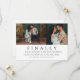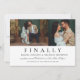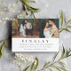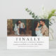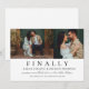 Um convite espirituoso e moderno para salvar a data, com o título ousado "Finalmente!" acima de duas fotos de noivado lado a lado e detalhes em letra cursiva elegante em um fundo branco limpo. O design minimalista em preto e branco combina personalidade divertida com tipografia sofisticada, perfeito para casais que desejam um convite com senso de humor. O verso simples inclui espaço para o site do seu casamento. Todo o texto e fotos são totalmente personalizáveis.
