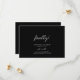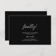 Celebre o seu tão esperado momento com este elegante minimalista "Finalmente!" Salve o cartão de Data. Apresentando um roteiro branco-na moda emparelhado com uma tipografia serif limpa em um fundo preto nítido, este design moderno é perfeito para casais que querem manter as coisas simples, eternos e chic. Personalize com seus nomes, data do casamento e local. Seguir-se-á um convite formal — este cartão define o tom para uma celebração clássica e inesquecível.