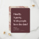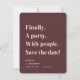 Por último, um texto simples do Partido Marsala Wine Minimalista, exceto a data. Um design moderno e simples destaca esta tipografia editável de cores! Finalmente. Uma festa. Com pessoas. Reserve a Data! Com uma bonito textura de mármore atrás, mas pode ser substituída pela sua própria foto. Veja meu compro para ver a suíte de casamento inteira para este design!