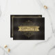 Molduras e ornamentos deliciosos, texturizados em folha de ouro falso, decoram as peças desta elegante suíte de casamento. Uma letra de serifa romântica dá a esses cartões de casamento 'Salve a Data' um olhar clássico, mas moderno. Um fundo texturizado em carvão quente adiciona o toque final. Procure ID871 para ver a coleção completa de casamento e outras opções de cores para este design.