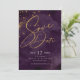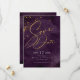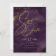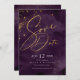 Um fundo de aquarela em tons de roxo de ameixa é tocado por um abstrato de linhas de ouro finas e efeitos de iluminação reluzentes para criar as peças desta bela suíte de casamento. O cartão 'Salvar a Data' do casamento mostrado aqui também apresenta texto baixo, centralizado e caligrafia elegante. Adicione facilmente seus próprios nomes, data de casamento e informações usando o modelo fornecido. Procure ID867 para ver outras peças e opções de cores para este conjunto.