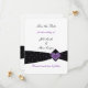 Um design clássico com uma fita preta, acentuado por corações roxos e um design cardíaco central. Personalizar com nomes e data de casamento, conforme desejado.