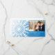 Faça um tom festivo para as núpcias de dezembro, Janeiro ou fevereiro com o elegante floco de neve branco no Casamento no inverno azul Salve o Cartão com fotos de Data. Personalize-o com os seus nomes pessoais, data e imagem da cerimônia de casamento. Este elegante casamento de inverno personalizado mantém o cartões de fotos de data com um intrincado design de floco de neve branco sobre um fundo de gradiente azul.