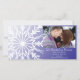 Faça um tom festivo para as núpcias de dezembro, Janeiro ou fevereiro com o elegante floco de neve branco no Casamento no inverno roxo Salve o Cartão com fotos de Data. Personalize-o com os seus nomes pessoais, data e imagem da cerimônia de casamento. Este elegante casamento de inverno personalizado mantém o cartões de fotos de data com um intrincado design de floco de neve branco sobre um fundo de gradiente roxo.