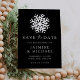 Anuncie seu casamento no inverno com estilo com nosso Simples Floco de Neve Preto e Branco Salve a Data. Apresentando um floco de neve branco e ousado e "Salve a Data" em uma elegante serifa e letras caligráficas sobre fundo preto, esta design capta a beleza do inverno. Personalize com seus nomes, data do casamento e local abaixo. Perfeito para o inverno, feriado e casamentos de Natal, esta salva a data dá o tom para uma celebração mágica.