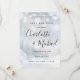 Com nomes de estilo de assinatura, este cartão de salva-data elegante pode ser personalizado com as informações da sua data especial em letras cinza chique em um fundo de geada de inverno. Projetado por Thisisnotme©