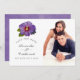 Cartões de foto de casamento de flores de hibisco tropicais com borboleta save the date com tema ultra violeta.