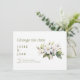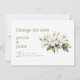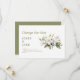 Avise seus convidados sobre seus novos planos com esta elegante mudança de data. Apresentando uma ilustração delicada da flor da maçã em branco suave e verde, este design usa a tipografia serifônica moderna em verde-oliva sobre um fundo branco limpo para um olhar fresco e minimalista. O cartão comunica claramente seu adiamento com um toque gentil e pessoal, perfeito para casamentos de primavera ou jardim. O reverso apresenta um verde de azeitona sólido para um acabamento sofisticado.