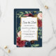 Anuncie seu grande dia com estilo com este elegante cartão de "save the date" rústico, apresentando um rico fundo azul-marinho, flores em burgundy profundo e blush, e uma moldura em dourado luxuoso. Este design floral romântico atinge o equilíbrio perfeito entre sofisticação moderna e charme clássico - ideal para casamentos de outono, inverno ou noite. Personalize com seus nomes, data e local para um toque pessoal que define o tom da sua celebração especial.