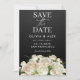 Elegante e sofisticado convite de Salve A Data com escrita branca. Perfeito para casamentos, aniversários, formaturas e outros eventos.