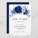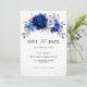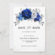 Casamento elegante do tema prata azul-real salve o cartão de data com buquê elegante de azul-real, Marinho, prata, puro branco-rosa e folhas verdes de eucalipto. Entre em contato comigo para obter ajuda sobre a personalização ou se você precisar de outro produto com este design.