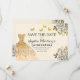 Anuncie seu dia especial com o cartão Floral Dourado Salve a Data Quinceañera. Este elegante design apresenta sotaques florais de ouro luxuosos que exaltam sofisticação e charme. Perfeito para dar o tom para a sua próxima quinceañera, esta salva a data combina um toque de beleza real com elegância eterno. Os detalhes delicados do ouro simbolizam a alegria e graça de sua celebração do marco, garantindo que seus convidados marquem seus calendários para este evento inesquecível. Um belo prelúdio para seu dia da quinceañera!