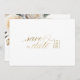 Esta suíte de casamento com seus florais exuberantes e dramáticos de branco cremoso a rosa pincelado, sotaques dourados e belos fundos de aquarela, cria uma vibração elegante e romântica, dando apenas uma dica do que os convidados podem esperar no seu grande dia. Esta placa exclusiva 'Salvar a Data' fornece uma modelo para adicionar facilmente detalhes do evento. Um texto floral de canto e dourado gritante adiciona à elegância geral deste cartão. Procure ID1022 para ver todos os produtos nesta suíte de casamento.