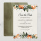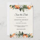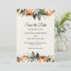 Anuncie seu grande dia com elegância usando este moderno cartão de Save the Date de aquarela, adornado com flores vibrantes laranja e folhas verdes exuberantes. Perfeito para casamentos de primavera, verão ou jardim, este design oferece um toque botânico fresco com tipografia sofisticada. Personalize facilmente com seus nomes e detalhes do casamento para criar um item que seus convidados vão amar. Ideal para casais que procuram papelaria de casamento floral moderna com um toque quente e orgânico.