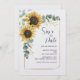 Crie um Sunflower Floral moderno salve o cartão de data com este modelo bonitinho com um belo buquê floral rústico, quadro de efeito de ouro geométrico, com uma tipografia simples moderna. DICA: Cartões de suíte de casamento iguais, como RSVP, programas de casamento, banners, tapeçarias, etiquetas de presentes, placas e outras pegadas de casamento e guloseimas estão disponíveis na coleção abaixo com esta design.
