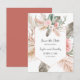 Este convite de "salve o dia" rústico apresenta grama de pampas, flores tropicais e penas em tons suaves e discretos de marfim, marrom, bege, terracota e pêssego. Personalize com suas próprias informações. ****NOTA: Se você precisar de ajuda com este convite ou tiver pedidos personalizados com os quais eu precise ajudar, não coloque este produto no seu carrinho. Em vez disso, envie-me seu pedido por e-mail para shutterbug600@yahoo.com. Sou uma designer independente que lista meu trabalho para venda através do Zazzle; no entanto, eles cumprem todos os aspectos da fabricação e envio dos referidos designs. Não tenho acesso à sua conta e não posso ver o que você fez. As respostas às suas perguntas podem ser encontradas em https://www.zazzle.com/about/ask.