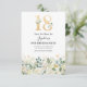 Defina o tom para uma celebração marcante com nossos cartões de aviso prévio de festa de aniversário de 18 anos. Com folhagem verde rústica, flores aquáticas brancas elegantes e acentos dourados, e um modelo de texto fácil de personalizar.