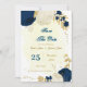 Flores azuis e brancas-marinhos românticas com folhas de ouro botânicas exceto a data de convite Os detalhes da brilha são simulados.
