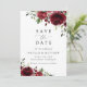 Convide amigos e família de estilo e defina o tom para seu dia especial com este charmoso cartão de data. Design apresenta flores de cor-de-água borrifadas e verde em fundo branco.