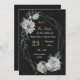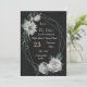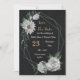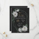 Convite de casamento único com flores brancas românticas e folhas verdes com quadro geométrico botânico preto. PARA MAIS PRODUTOS CORRESPONDENTES, clique na coleção acima ou entre em contato comigo.
