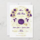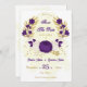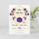 Romântica, roxo real e flores brancas com folhas de ouro, botânico, exceto a data de convite Os detalhes da brilha são simulados.