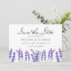 Reserve a Data! Anuncie sua data de casamento para a família e amigos com este elegante floral, salve o cartão de data. Apresenta a ilustração aquosa de buquês de flores de lavanda e a escrita química. Personalize adicionando nomes, data, local e outros detalhes. Púrpura floral, salve o cartão de data é perfeito para primavera e casamentos outono.