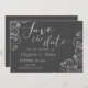 Flores chic prateadas elegantes em fundo de cinza. Salve com beleza a data que pode ser personalizada com seu nome.Selecione o botão "personalizar" para alterar o estilo, a cor e o tamanho da fonte.
