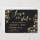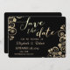 Flores elegantes de ouro-chico em fundo preto. Salve com beleza a data que pode ser personalizada com seu nome.Selecione o botão "personalizar" para alterar o estilo, a cor e o tamanho da fonte.