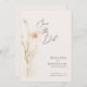 Um design de flor silvestre, romântico e caprichoso, prensado, com pistas e pincéis de ouro e pincel contra um fundo de cor creme faz com que esta design de casamento tenha de ter para todas as estações. Personalize facilmente suas informações pessoais para torná-las suas.