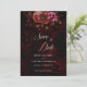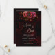 Cartão elegante e sofisticado de salvar a data do casamento em vermelho burgundy escuro e preto. Torne o seu cartão de RSVP de casamento tão elegante quanto a celebração com este design floral preto e vermelho escuro chic. Com rosas burgundy ricas, flores vermelhas profundas e folhagens escuras, este cartão exala elegância e romance com um toque sombrio e sofisticado. A tipografia refinada, que combina letra moderna com fontes serif clássicas, cria um visual atemporal e sofisticado. Perfeito para casamentos góticos, vintage ou luxuosos à noite, este cartão de RSVP complementa lindamente o conjunto de casamento, ao mesmo tempo que facilita aos convidados a confirmação da presença com estilo.