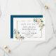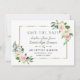 Desenho romântico e elegante com flores cor-de-rosa, rosa choque, creme em aquarela, moldura dourada única, divisor floral; no verso, buquê de flores em fundo azul oceano. Use a ferramenta Personalizar para adicionar suas informações e fazer alterações. Itens correspondentes podem ser encontrados na minha Coleção de Flores Primavera Rosa Choque.