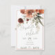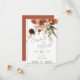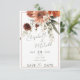Este moderno, porém rústico, guarde o cartão de data com a design do local do casamento apresenta um buquê superior de pessegueira, ferrugem, terracota, flores castanhas e brancas. O fundo é branco com uma estrutura fina de terracotta; o dorso é um terracotta macio. Esta design faz parte da Rustic Terracotta Rust Flowers Wedding Suite de cartas criadas pela Simplesmente Farmhouse Press.