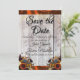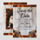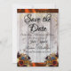 Este design tem uma elegância rústica, mantendo um tema simples. Ramalhetes de flores silvestres em belas cores de outono e luzes cintilantes com fita de cobre sobre um fundo de madeira de celeiro com espaços reservados para as informações. Espaço para uma foto do casal no verso do cartão. Concebido para combinar com a Coleção de Flores Silvestres e Fitas Rústicas. Para alterar os detalhes, clique em «Personalizar». Para mover o texto ou alterar o tamanho, a fonte ou a cor do texto, clique em «Clique para personalizar ainda mais»
