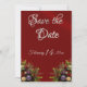 Este design tem uma elegância rústica, mantendo um tema simples. Ramalhetes de flores silvestres em belas cores quentes de verão sobre um fundo vermelho com espaços reservados para a data. A parte de trás apresenta espaço para uma foto do casal bordeada por fita vermelha sobre um fundo de madeira de celeiro. Concebido para coordenar com a Coleção Rustic Wildflowers & Ribbon. Para alterar os detalhes, clique em «Personalizar». Para mover o texto ou alterar o tamanho, a fonte ou a cor do texto, clique em «Clique para personalizar ainda mais»