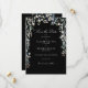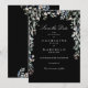Um cartão elegante de flores silvestres aquareladas para casamento com os detalhes da sua celebração em tipografia branca elegante em um fundo preto estiloso. Projetado por Thisisnotme©