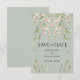 Flores silvestres rosa bege em um belo fundo verde sálvia. Cartão de Salve o Dia para todos os seus familiares e amigos.
