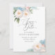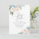 Casamento botânico elegante salve a data com buquês de flores de marfim azul e cor-de-rosa e folhas suaves sobre o fundo branco clássico e seus nomes e todos os detalhes especiais de casamento escritos em uma cinza clássica. O reverso do cartão tem um buquê pequeno no fundo sobre um fundo cor-de-rosa empoeirado Quer você esteja planejando uma celebração chic de verão ou um romântico caso de primavera, este salve a data define o tom perfeito para seu dia especial.
