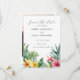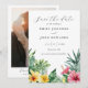 Este cartão de save-the-date de casamento com flores tropicais em aguarela moderna e elegante pode ser personalizado com suas informações em tipografia moderna e uma foto especial no verso. Criado por Thisisnotme©
