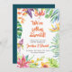 Moderno, brilhante e fresco cartão Save the Date com tema de flores tropicais com tipografia moderna e de roteiro e lindos buquês de aquarela botânica. Mudança de cor de fundo possível em “personalizar mais”. A textura de aquarela na parte de trás pode ser excluída em "personalizar mais" e qualquer cor pode ser selecionada. Itens correspondentes disponíveis na coleção "Casamento Floral Tropical".