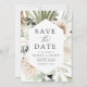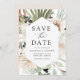 Casamento floral tropical elegante, exceto a data que inclui um quadro geométrico de flores tropicais creme, palmeiras, gramíneas pampas e folhagem verde. Personalize a data botânica com seus nomes, data do casamento, local, etc. O boho floral salve as datas são perfeitas para anunciar seu próximo casamento na praia de verão.