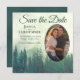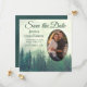 Estas belas cartões salve a data são a maneira perfeita de deixar seus amigos e família saberem sobre seu próximo casamento. Eles apresentam um design de aquarela rústica com uma floresta de pinheiros verdes da montanha envolta em neblina ou neblina. A legenda: Salvar a data com espaço para seus nomes, data e local. A parte de trás é uma cor verde da floresta marmoreada. Perfeito para um casamento no exterior ou na montanha.
