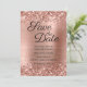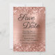 Rosa, brilho fino, cor-de-rosa e folha cor-de-rosa e papel a ouro-rosa para o seu casamento, guarde as informações de data. A fonte decorativa "Salvar a Data" é um estilo elegante de caligrafia contemporânea. As informações de nome e evento são exibidas em um estilo de fonte mais clássico. Casamento de gradiente de brilho salva a data. Rosa dourado de Faux guarde as datas.