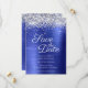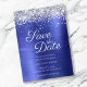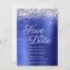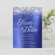 Crie seu casamento moderno, salve as datas. Bordos superiores brilhantes e brilhantes, folheados, emparelhados com uma folha metálica azul esfregada, azul-safira, clara a escura. Toda a textura brilhante, faísca, metálica e brilhante é criada por uma imagem gráfica digital impressa. O estilo e a cor da fonte podem ser personalizados. Cor azul clara e marinho.